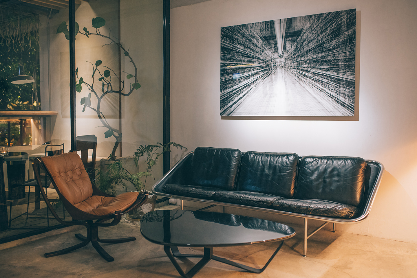 被稱為「天母秘境」的Lounge位在中山北路七段上,樓下是YESART GALLERY,二樓則是Lounge的所在,沿著迴旋的樓梯上樓,映入眼簾的是可眺望街景的小吧台及綠色植栽,另有幾個可享受微風和陽光的座位,而室內牆面展示著台灣藝術家王筱雯的作品及李浩的攝影作品,第一次去時放的是Fireign Fields的音樂,跟Lounge的調性搭配的很好,讓人一坐下就能馬上進入整間店要給你純粹放鬆的狀態。